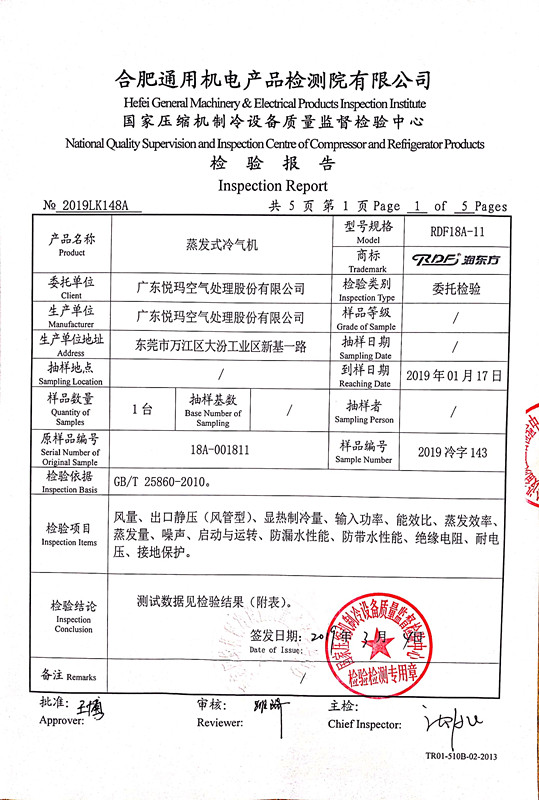 蒸發式冷風機檢測報告2021-04-29 15:28:30   點擊:3856