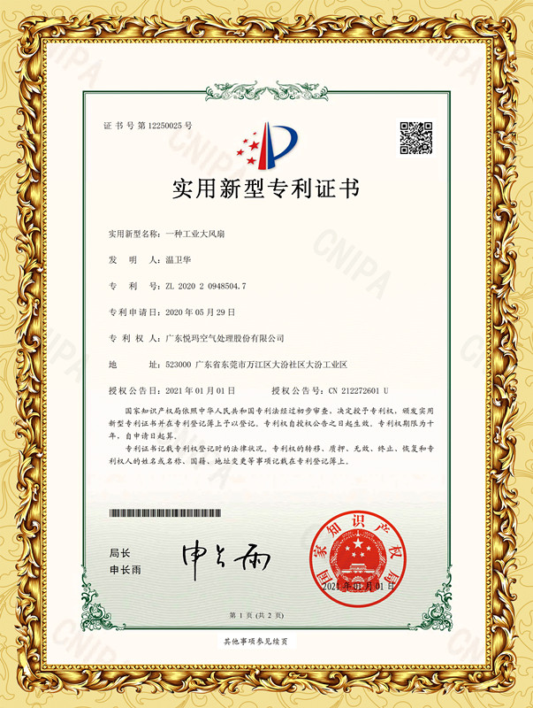 工業大風扇各項專利證書2021-04-29 15:35:10   點擊:3115